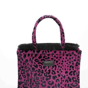 LEOPARD VELVET MAGENTA MEDIUM TOTE BAG