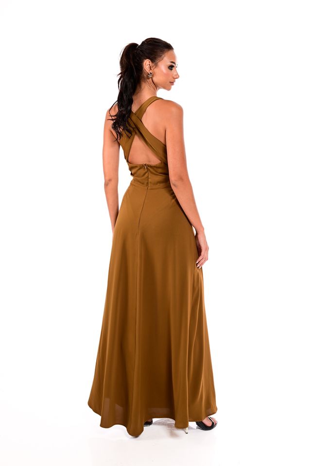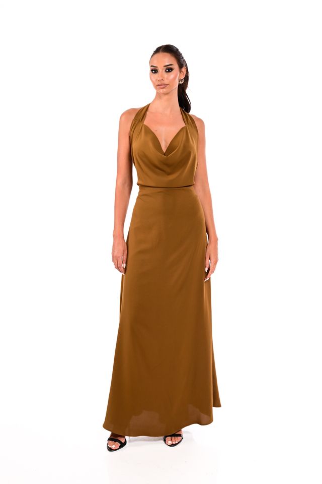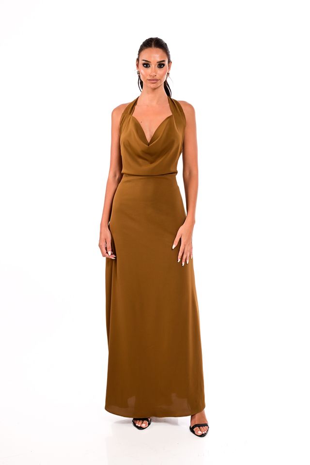 LUXURY SATIN DRESS WITH DRAPED DECOLLETTE-WECOSS